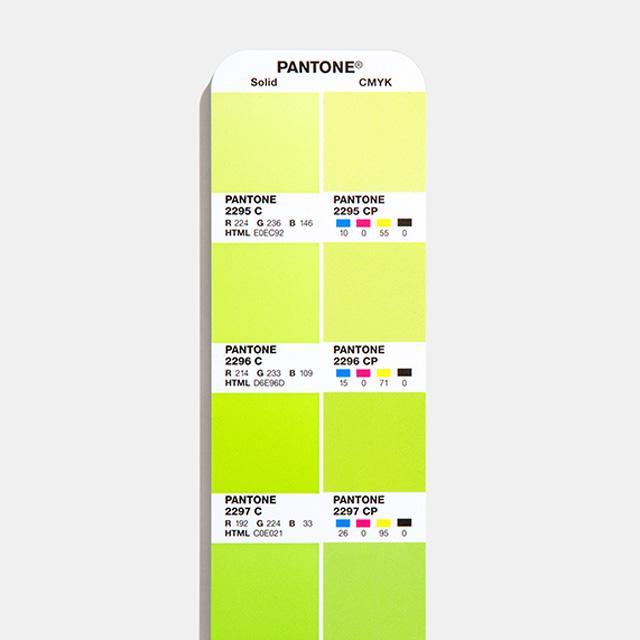 2022年12月に追加されたソリッドカラーの新色224色を含む新カバーデザインの最新版で、メタリックカラー、パステルカラー、ネオンカラー(蛍光色)を除くパントンスポットカラー全2,359色とそれらを4色プロセス印刷(175線)で再現した近似色を並列に上質紙に印刷し収録、また参考値としてCMYK値、デジタルメディア用のHTML値(16進数)、RGB値が合わせて表示されています。