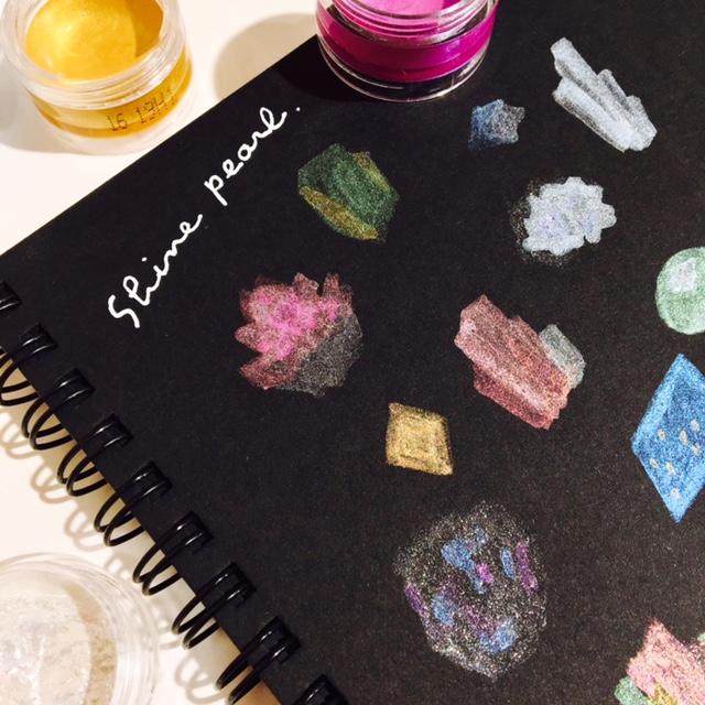 シャインパールどうしや水彩絵具との混合もできるので、効果的にポイント使いすることで表現の幅が広がります。