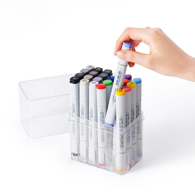 収納に便利な透明プラスチック製ケース。コピッククラシックとスケッチのケースを共通化し、角を丸くしたことで見た目も美しくご使用いただきやすい形のケースとなりました。スケッチ・クラシック・コピックインク共通で使用できるプラスチックケース72本用です。