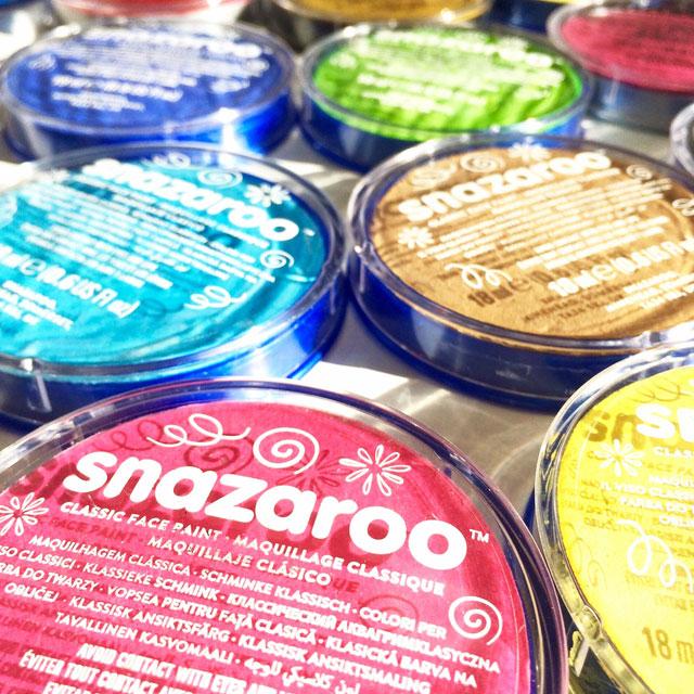 スナザルーは、フェイスペイント・ボディペイントの長い歴史を持つ英国で、子どもの顔に描く水性絵具として愛されてきた非常に安全性の高いボディペイント・フェイスペイント専門絵具です。